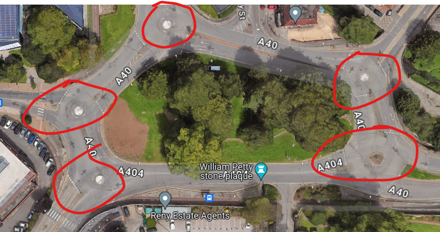 This is the gauntlet of roundabouts we have to navigate to get from our flat to the office. Five roundabouts! We have to drive through 3 of the 5, and for the first few days it was terrifying! This area is at the convergence of a mall, a hospital, a university and a private high school. So you can imagine the kind of traffic that goes through here. At one particular tricky spot of merging, we were so grateful to find that the drivers always let us in so that we could get across the lane to go through the next roundabout. We commented regularly about how polite and nice the British drivers have been.