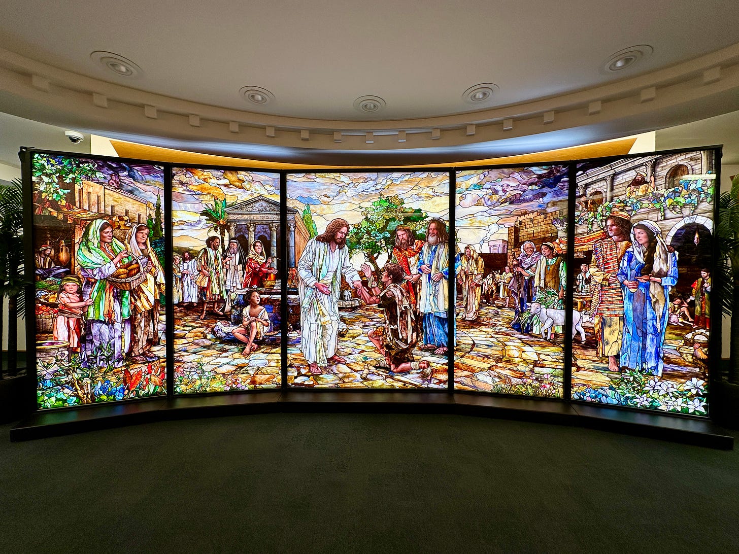 We saw another beautiful display this week while we went into London - a stained glass exhibit at the London Hyde Park Chapel. These panels were a duplicate of the panels displayed at the Rome Temple Visitor’s Center. They’re beautiful as a whole, but what I really loved was seeing the different people depicted from the New Testament stories and how the artist incorporated small objects and symbols embedded into the stained glass.