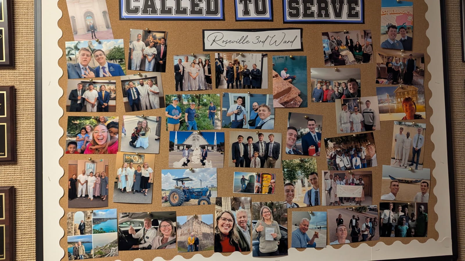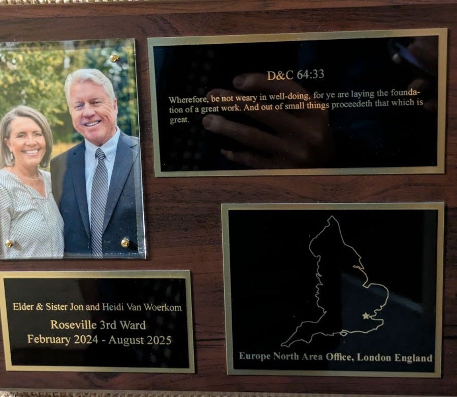 And finally (that was a lot more bits and bobs than I thought!)…we were sent a picture of our missionary plaque that hangs in the Roseville 3rd Ward building, next to a bulletin board of pictures of all the missionaries from that ward. So fun to see that all the other missionaries on the board are ones that I taught in seminary. What an amazing group to be a part of! We also have a plaque hanging in our Walnut Creek ward, so we feel extra loved by both! We miss our ward families!