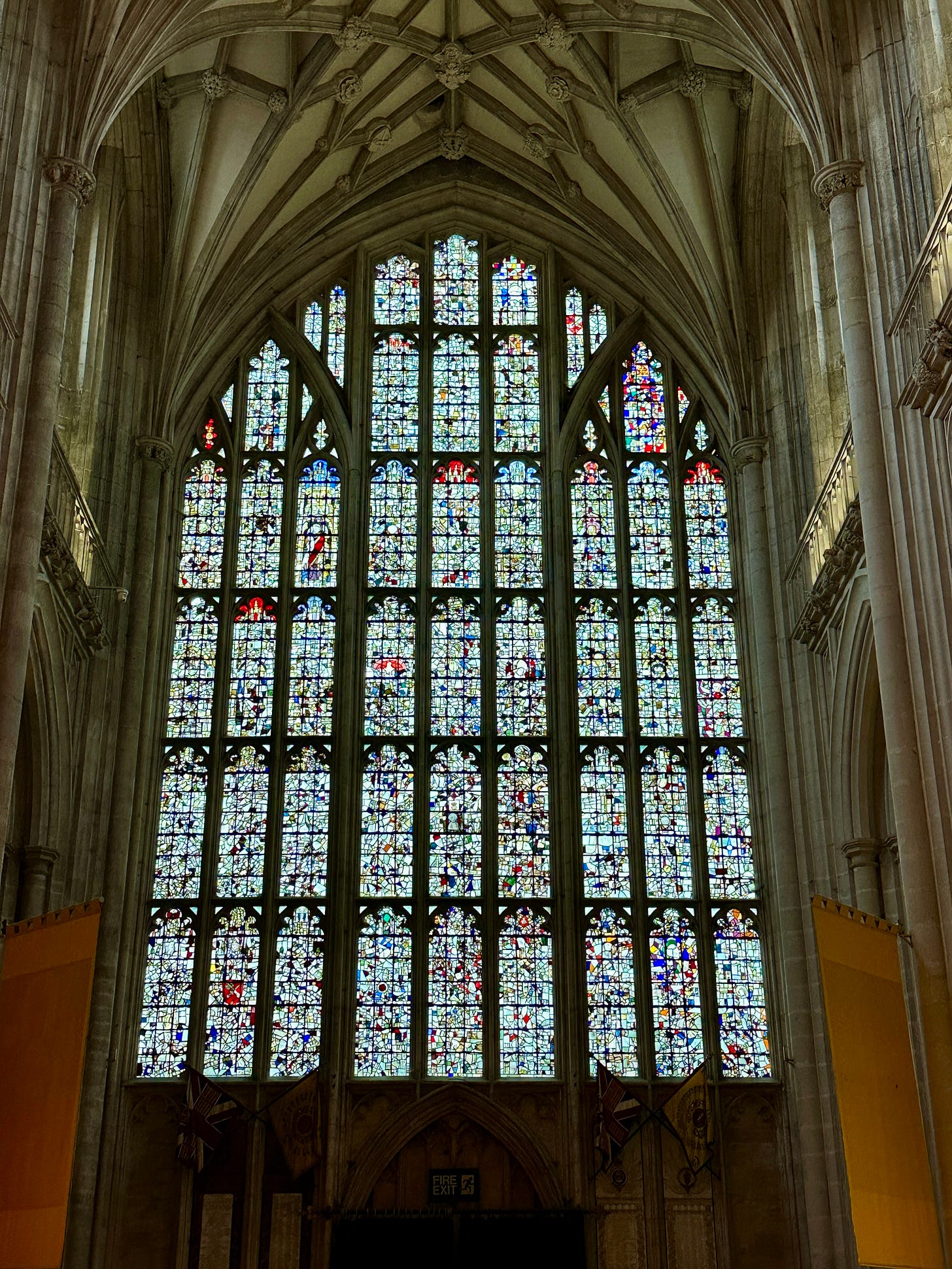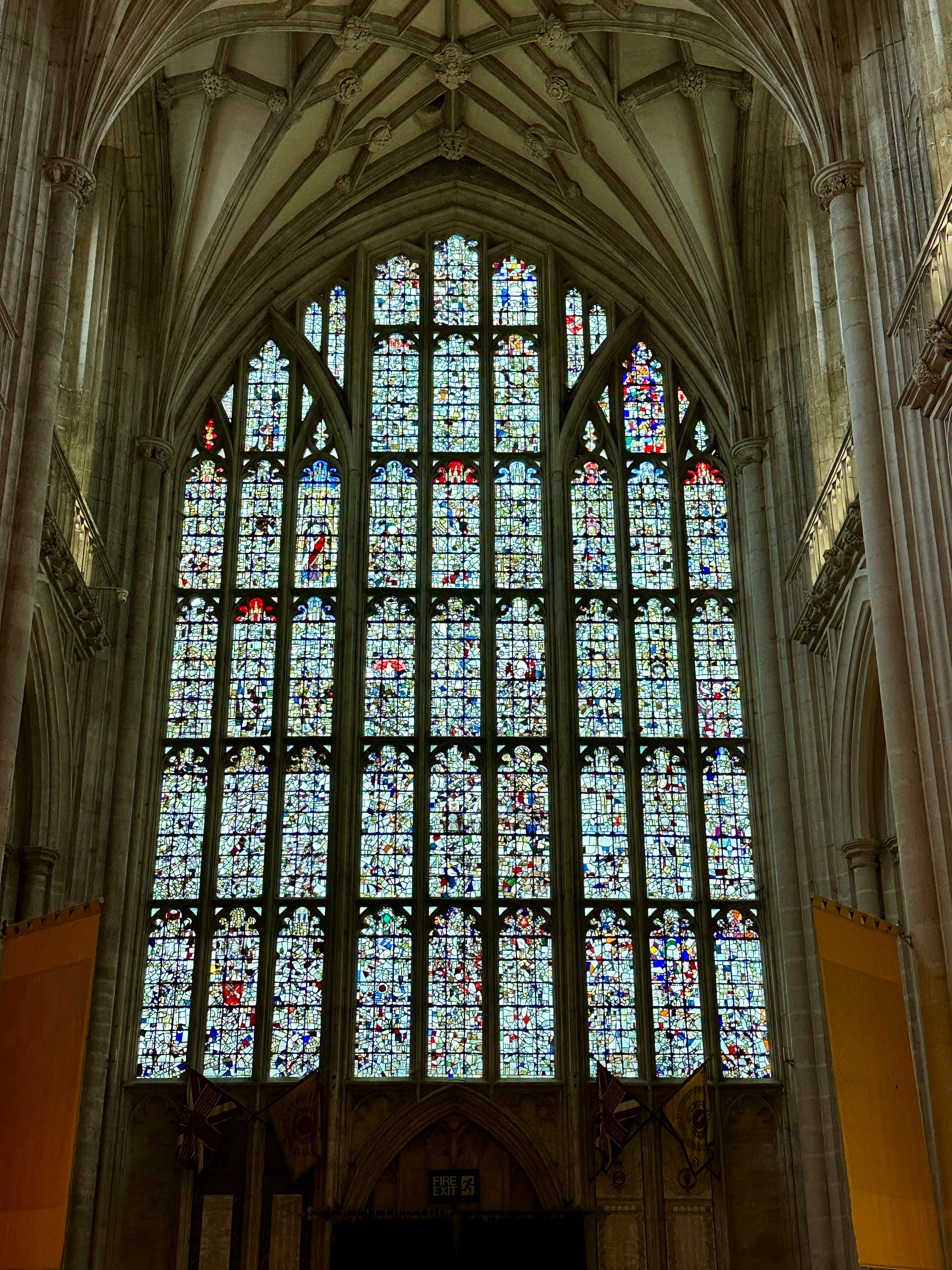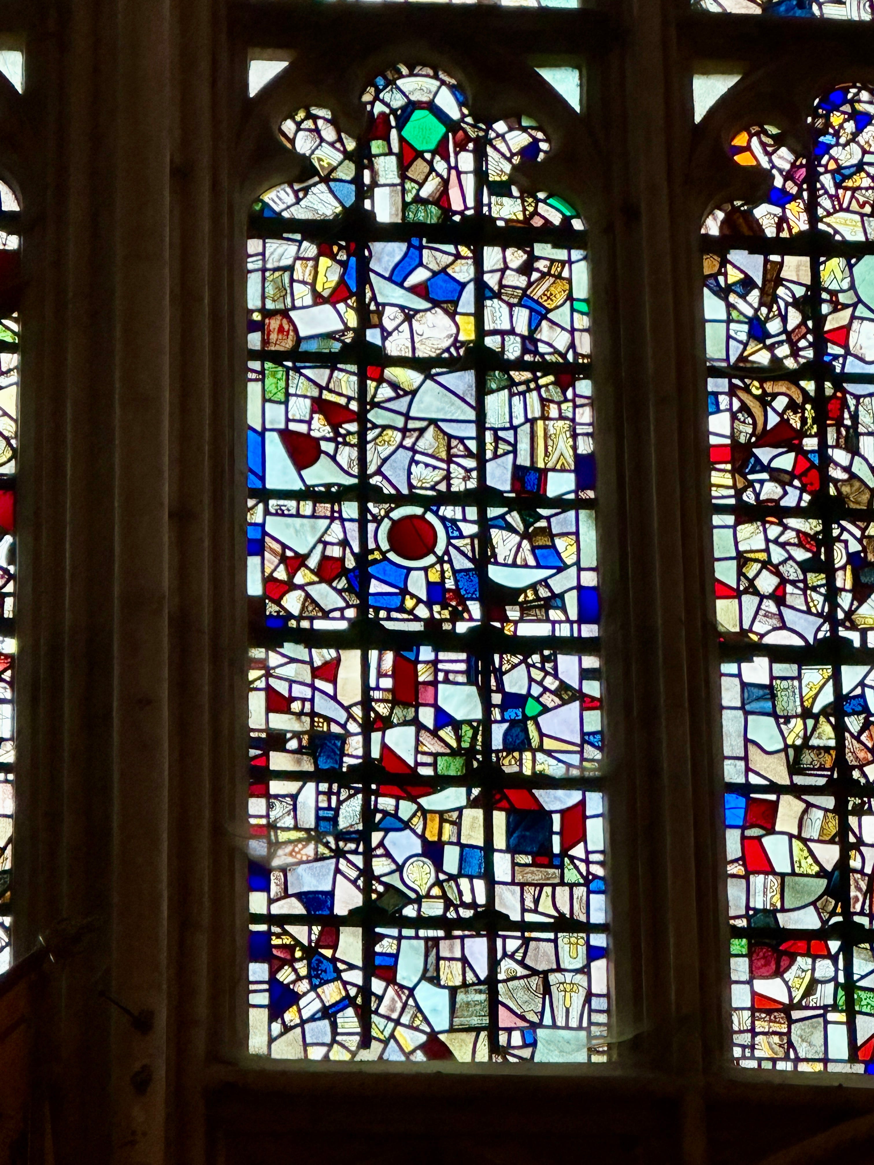 We immediately noticed the unique stained glass window inside the cathedral. It was beautiful, but the design didn’t seem to represent any specific scene as is typical of most stained glass in churches. Instead, it was a mosaic of thousands of pieces of broken stained glass.
