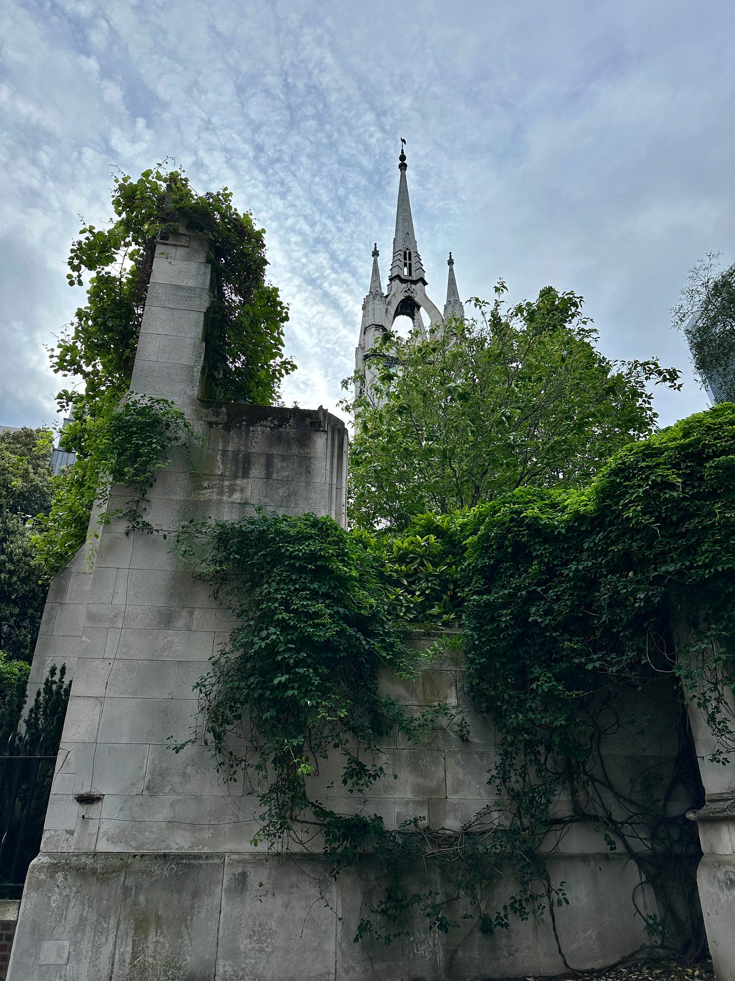 Finally, a really cool place we saw is called St. Dunstan in the East, which was a cathedral built around 1100 (!!!) that had been damaged in the Great Fire of London in 1666 and then bombed in WWII. Only the tower, which was designed by Sir Christopher Wren, and a few walls were still standing. It was never repaired but in 1970 the city turned it into a public garden. It was the perfect combination of two of my favorite things, cathedrals and gardens!